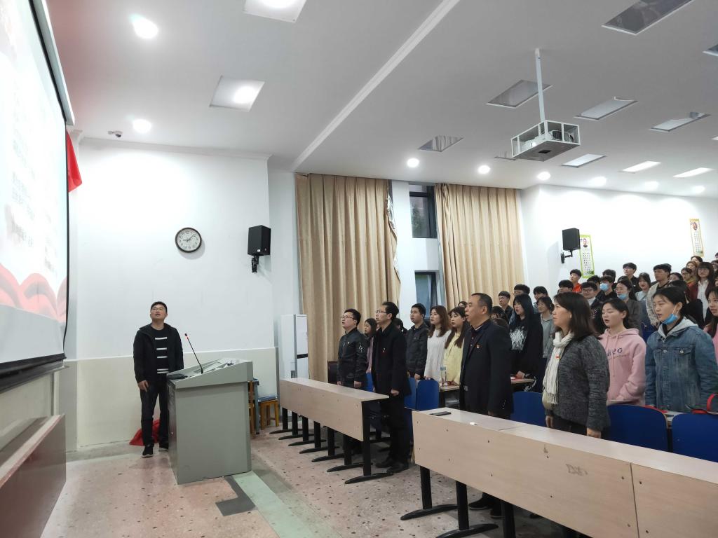 4月19日晚上,谈球吧体育官网入口音乐舞蹈公司分党校、谈球吧分党校在鹤鸣南楼111举行第七期(总第26期)入党积极分子培训班开班仪式及第一次主题党课。音乐舞蹈公司总支书记谭顺来、员工党支部书记邓志刚、谈球吧总支副书记舒克斌、员工第一党支部书记张莎莎、员工第二党支部书记武湘梅、辅导员冯旭以及两院共计140名入党积极分子参加开班典礼。开班仪式由邓志刚主持。