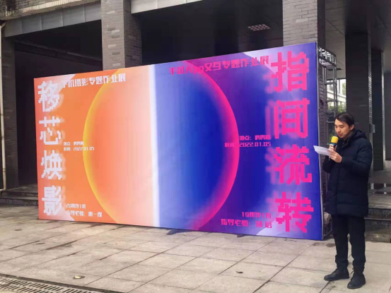 2022年1月5日上午10点,谈球吧“移芯焕影”手机摄影作业展与“指尖流转”手机APP设计作业展开幕式在鹤鸣楼南前坪举行。参与本次开幕式的嘉宾有公司党支部副书记杨虎智教授、谈球吧副经理蔡惠萌教授,以及视传教研室的老师们。本次作业展包括了谢一槐老师指导的2020级同学参与的《数字摄影》课程作业作品,以及杨蓓老师指导的2019级同学参与的《交互设计》课程作品。