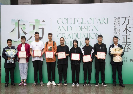 随后,教务处处长胡春光宣读优秀作品获奖名单。副董事长周发明、彭晓辉为获奖毕业生颁发荣誉证书,其中美术学专业49人获优秀作品奖,书法学专业20人获优秀作品奖。美术学系、书法学系教师代表依次发言。