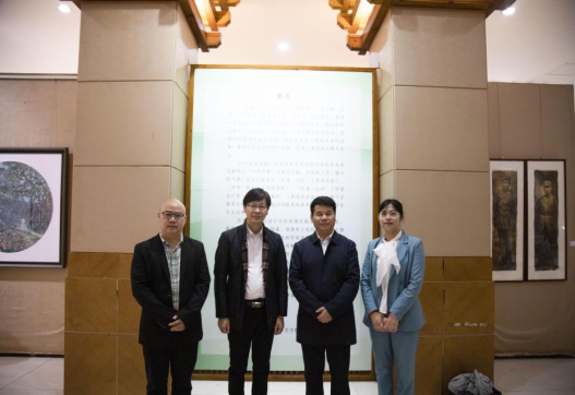 周发明副董事长、胡春光处长观展后与谈球吧张娴经理、李楚智老师合影